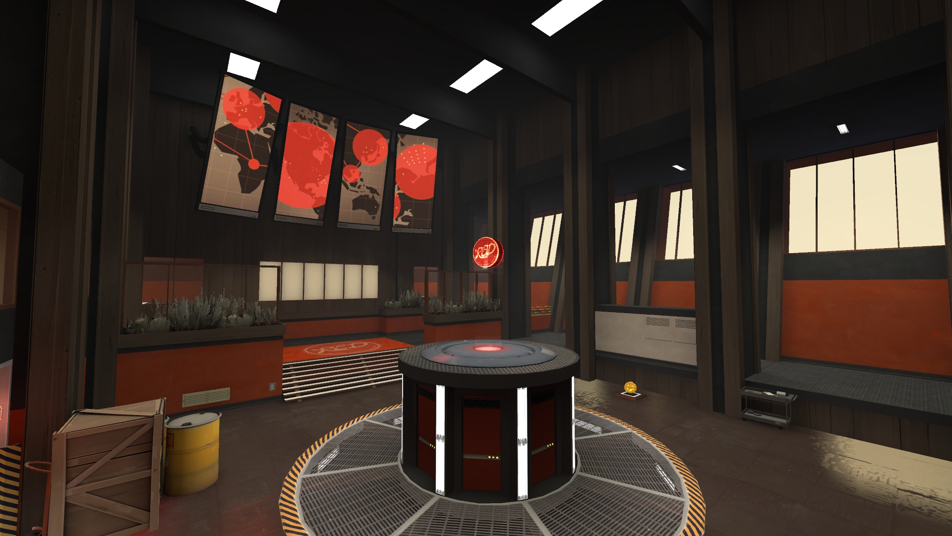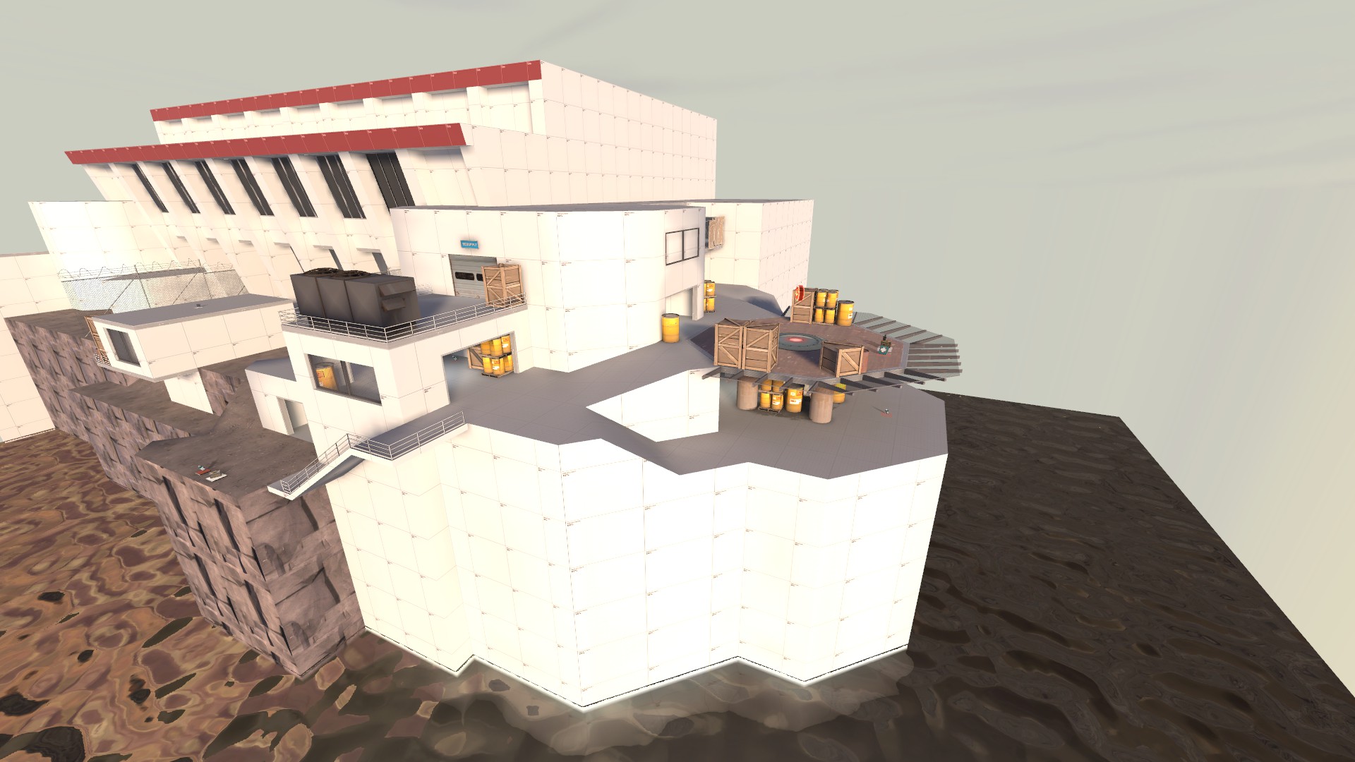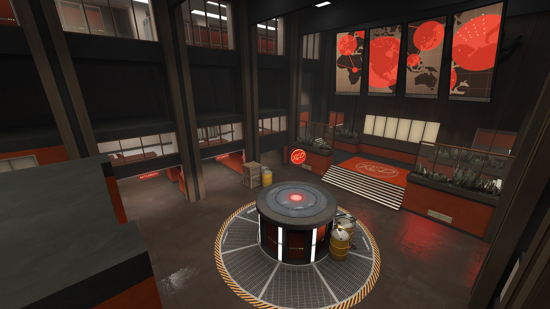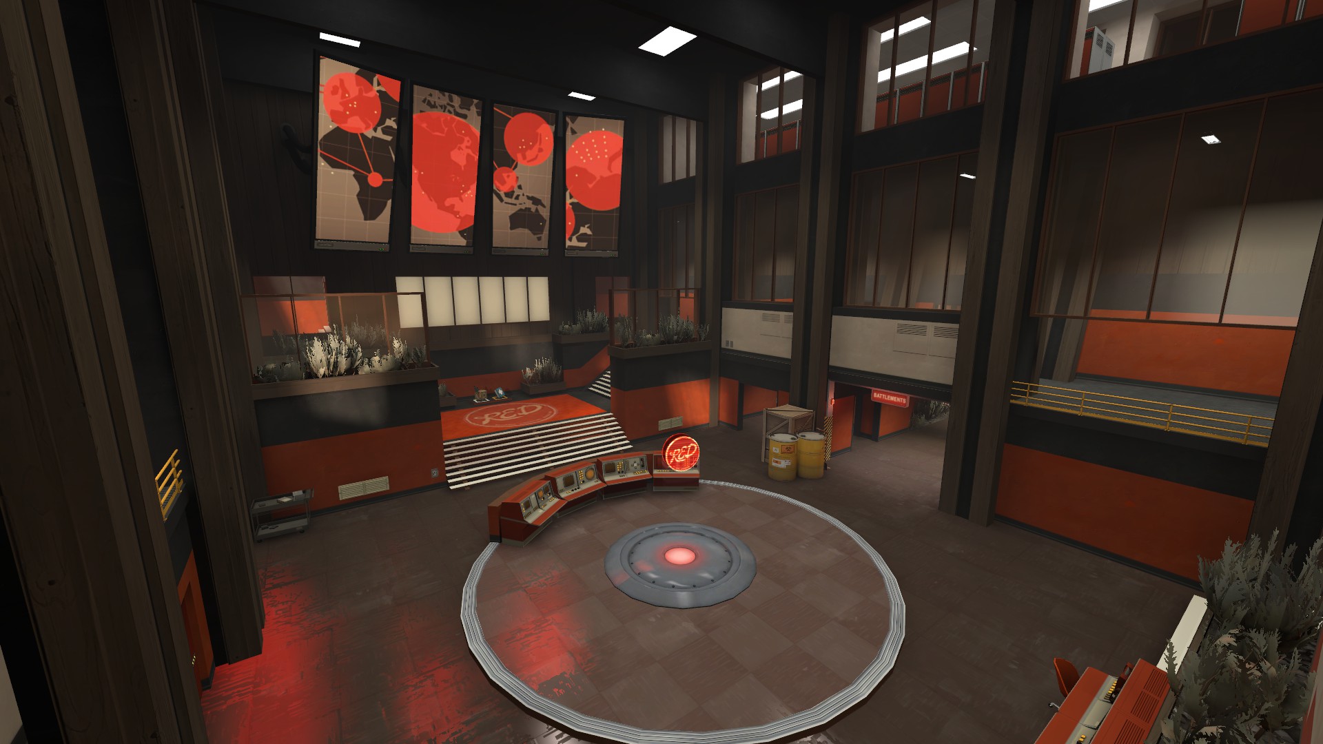 I was responsible for the full layout and artpass of the map from start to finish, as well as continued layout updates based on player feedback in the years following the map's original full release. The spy base portion of the map is inspired by and uses assets by Lauren 'Yrrzy' Godfrey, and also uses bespoke art assets created by Sebastian Grus.