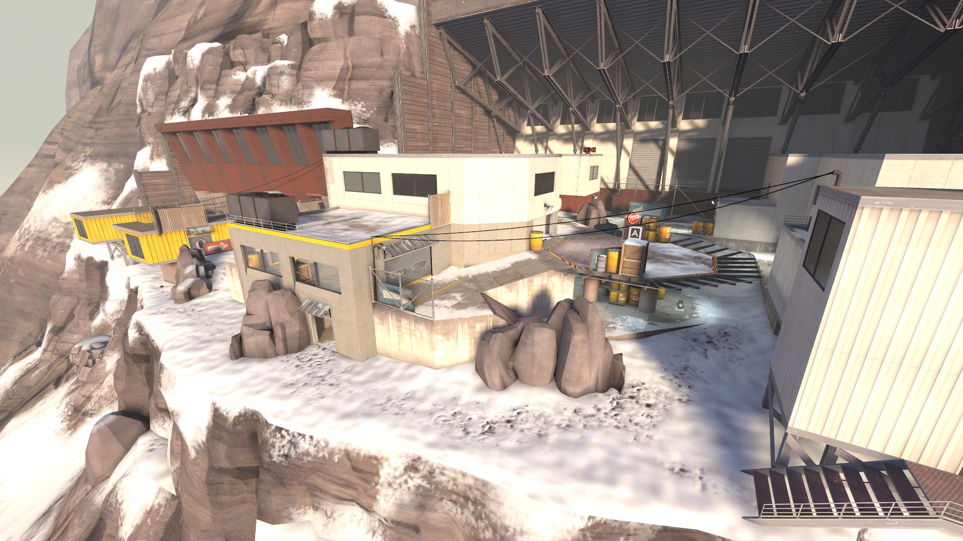 Snowbase was originally drafted and tested in layout phase as two separate maps, which were stitched together and tested as one map later in development. This made it much easier to iterate on each stage and get more focused playtest data and feedback.