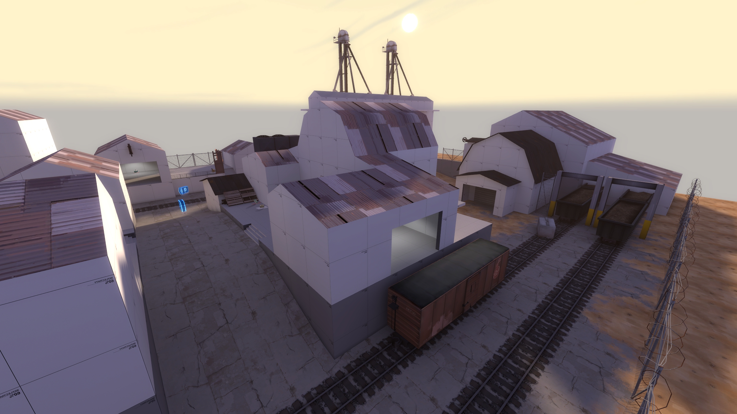 This map actually started as a completely different map. I was new to MvM map design and wanted to create something very simple, and the end result was an industrial farmland map designed as a large figure 8.